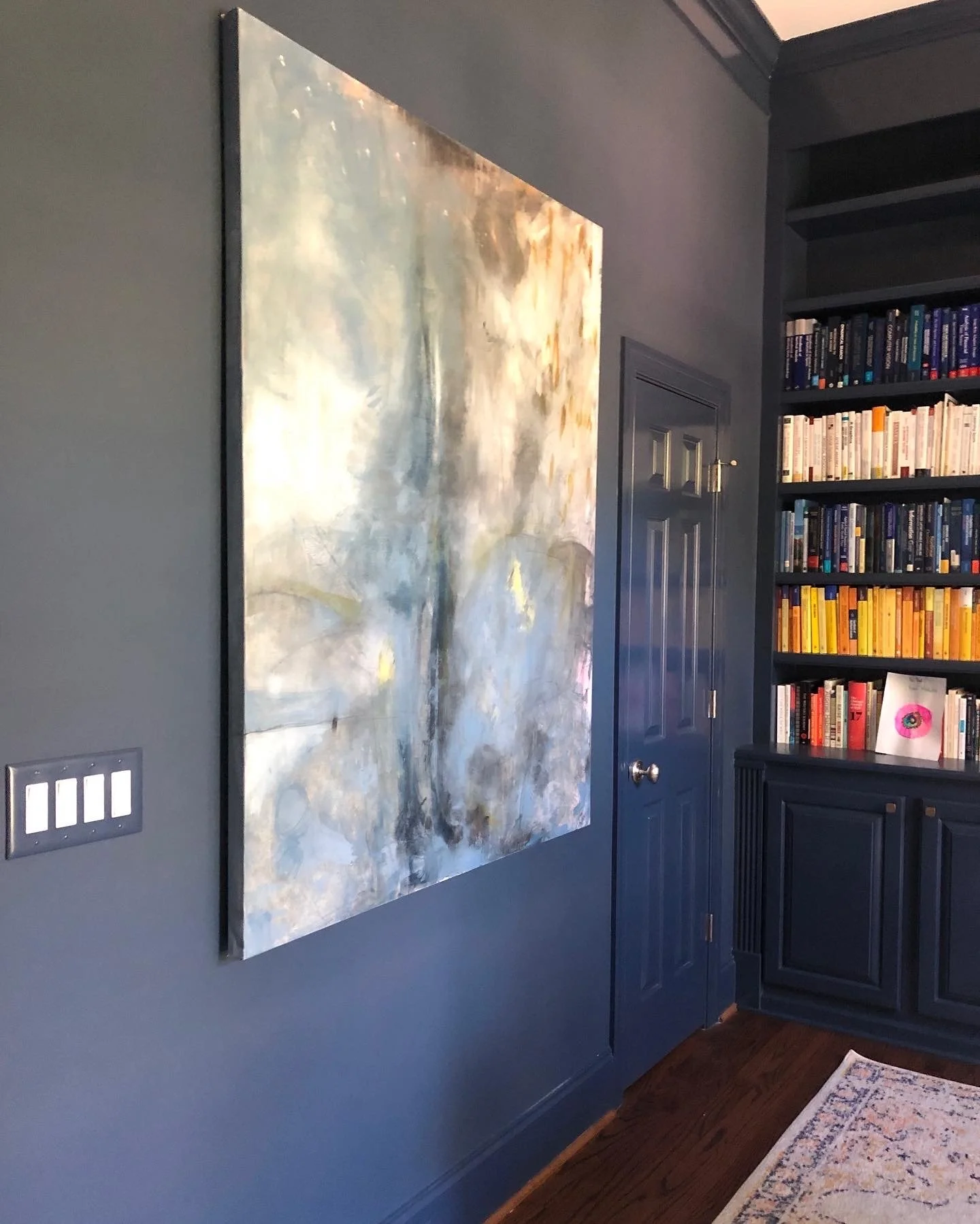 Once I receive your inquiry, we will go over colors, textures and sizes. You are welcome to send me any photos of your wall and room decor. With one of my apps, I’ll put a few pieces of my artwork into your photo to give you a better feel of your soon to be new space.